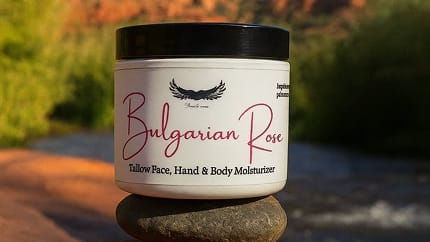 Luxurious rose-infused tallow for radiant, deeply nourished skin.